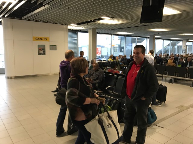In Denver, after boarding the plane and backing away from the gate, a passenger was too ill to travel and we had to return to the gate to let the passenger off. They then had to find the persons bag. That took about an hour. And then a mechanical issue was found. We departed an hour late. Upon on arrival to Amsterdam we were unloaded on the runway on to a bus. We did finally find the rest of our group for the next leg of the journey.