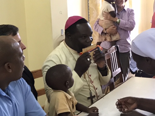 We are seated facing the group of children and the youngest of the children get some special attention from Fr John and Deacon Denny.