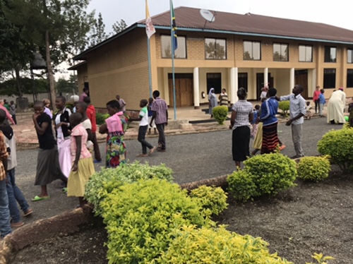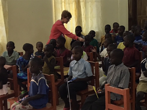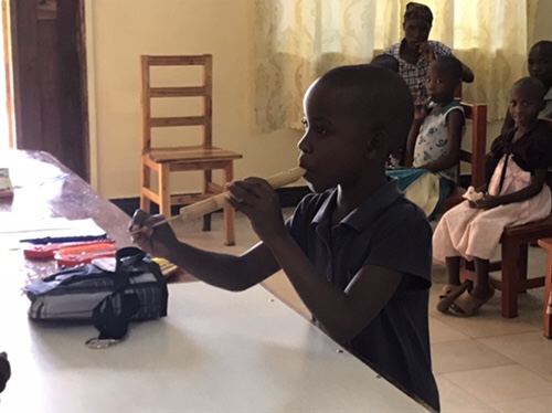 Father John is greeted by Justina the youngest of the orphans and we are quickly escorted to a large classroom.