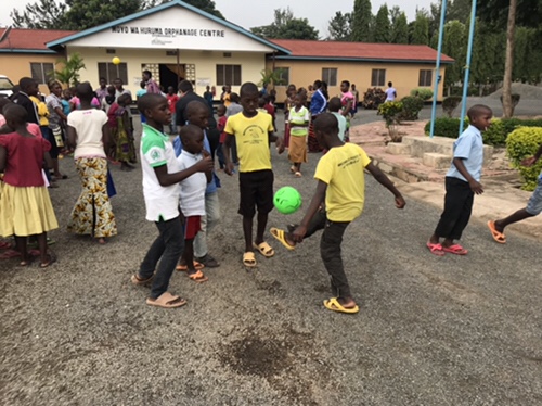 After we finished presenting the gifts from many generous people, we loaded into two vehicles to go visit the orphanage. Upon arrival a few children started to gather as we pulled in and then a huge crowd appeared. There are 106 children at the orphanage ranging from two to 19. Many of us got to know of the youngest, Victor who was the 101st at age 2.