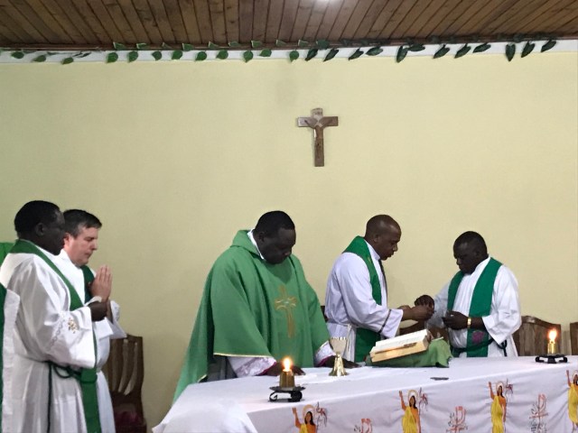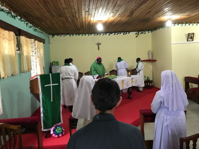 After a very long day and late night on Sunday, we started the day rather late for us with a celebration of the Mass with Bishop Flavian Kassala in the chapel in his home, beginning at 9:10 a.m. It was a great way to start the day. Then, after a good breakfast with Bishop, we set out in different directions on or various missions.