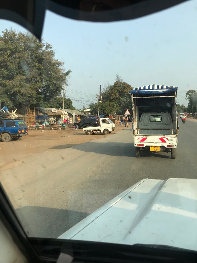 The afternoon traffic between the ferry and Mwanza was very heavy (see the picture below), and the going was very slow.