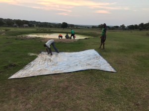 After our Venturi did not work. Everything was put back together. We began drilling and adding Bentonite into the water by hand. Dcn Denny, Salty and Sixtus left with Fr Johns brother Clement to get the casing that was arriving in Sangerema and make arrangements for the pea gravel that would go around the casing and then to Mwanza for a possible extra drill bit..