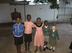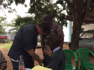 Some of the school children including Philip and Halima present the four of us with shirts from the School.