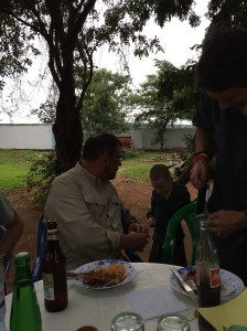 We made it across Lake Victoria and headed for the 50 min drive to Isole. Sixtus was driving and he made record time. When we got to Isole they had already brought the drilling rig to the house and so all we had to do was eat (does this sound familiar) and pay the workers for the week. Who goes to Africa and gains weight? Answer: pilgrims from Loveland, CO.