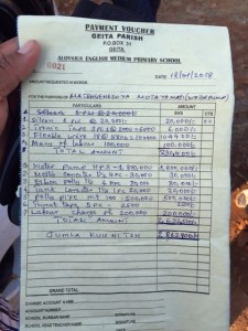 The Archbishop, Fr. James, Michael and Trisha left for Mwanza and a hotel before their flight. Karen and Tony went for a nap. Floyd, Lisa, Salty and Denny went to St. Aloysius school as Anthony had texted us that their well pump had failed.