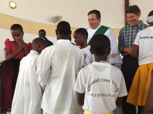 The day started with the group, all 7 of us, taking a taxi to Mass. Fr. Salvatory, who met us at the airport when we landed two weeks ago, is studying for a law degree and he invited us to the parish where he is assisting while he is in school. This parish is only a little over a year old. Mass was very nice, Fr. John was the celebrant and gave the homily, and Mass ended with the group being introduced.