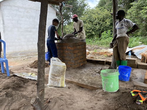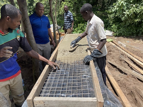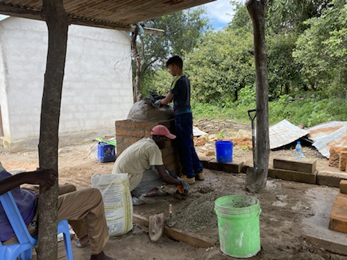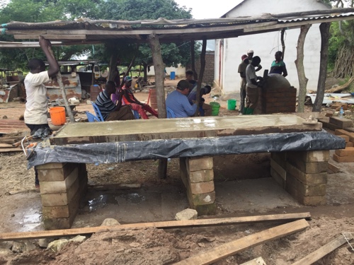 While waiting for the dome to dry and cut the opening, our group prepares a concrete counter top.