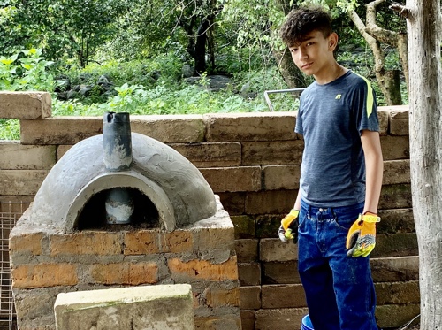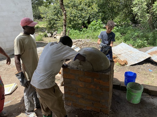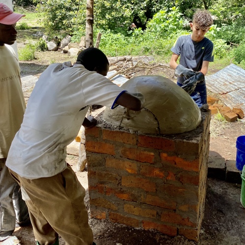 Upon arrival it was to continue with the oven and Jacob needed to build a dome. The first step is to mak a dome out of clay sand to hold up the clay cement mixture used to make the dome.